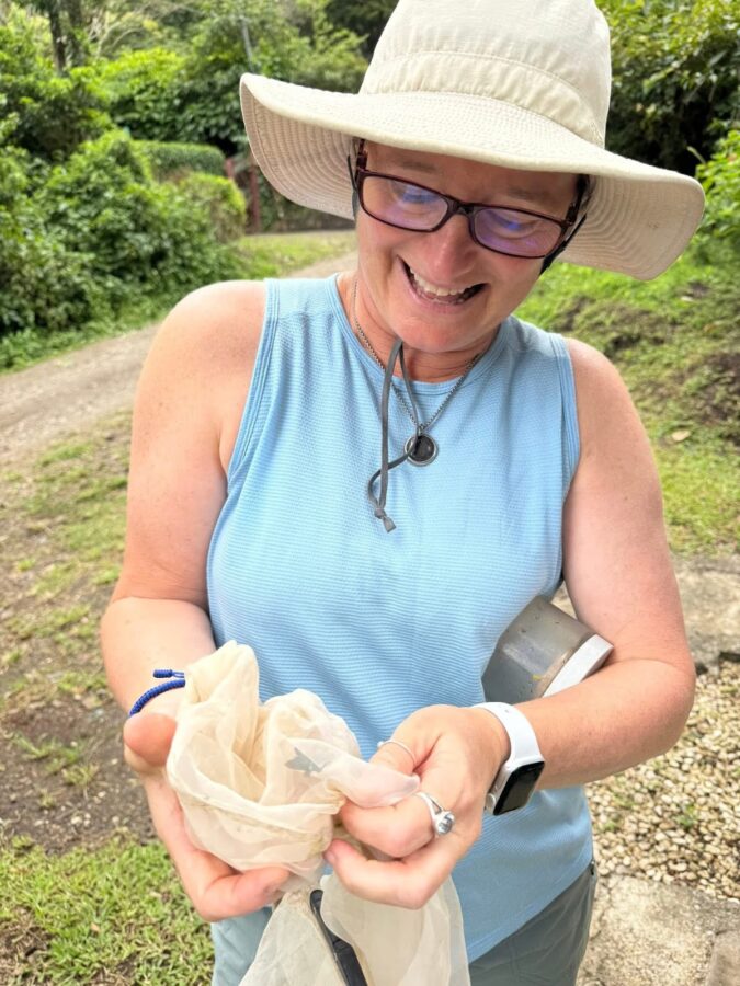 Getting out in the field each day we rotated between different plots of land planted with native plants to determine which attracted the most bees. We had nets and acetone laced containers as tools for collection. We were taught proper scientific labeling, first things first, no pens, they can bleed. We met with small farmers with a strong desire for sustainable farming. We enlisted practices such as polyculture, agroforestry, wild bee pollination and sustaining biodiversity by planting native species. Many of these practices will be engaging new additions to my life and environmental science focused lessons. My goal is always to get students outside and participating in real world science, this is much more successfully met when I have experienced field work myself. Hearing first hand from conservationists like Dr. Fabricio Camacho, who came to speak with us one evening, sharing his passions of agroforestry and conservation improved my knowledge and confidence so I can better teach these important topics to my students.