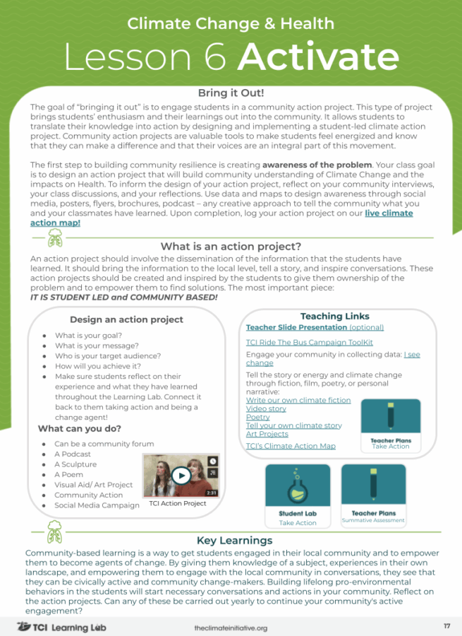 - Look at Climate Change & Health through TCI’s three lens approach: using the economic, sociocultural, and ecological lenses to understand all points of view